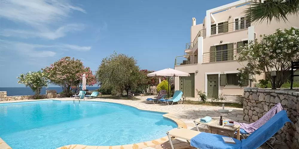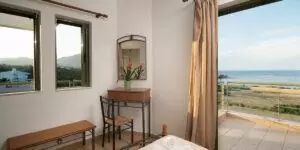 This spatious suite is situated on the first and the second floor of the complex, opening to large balconies on both levels overlooking the sea, the castle of Monemvasia and the neighboring area.